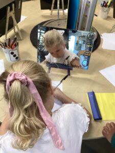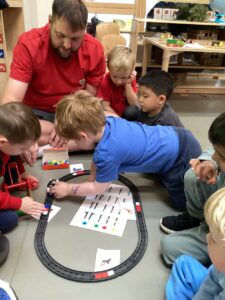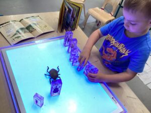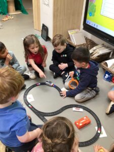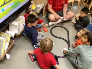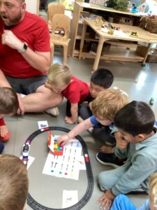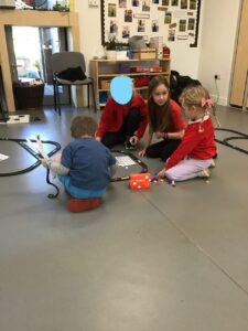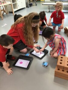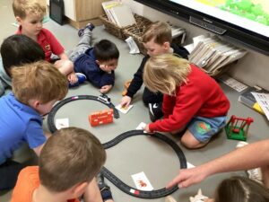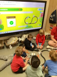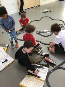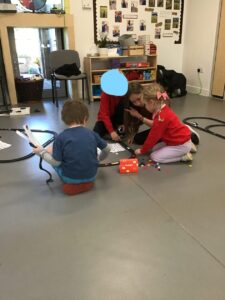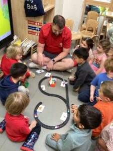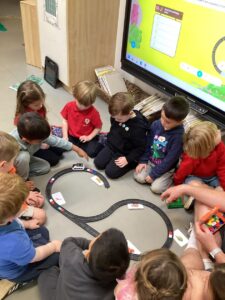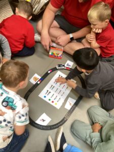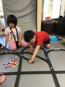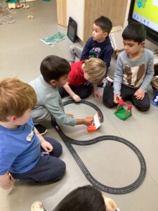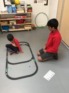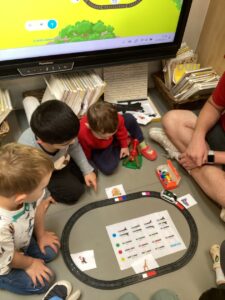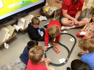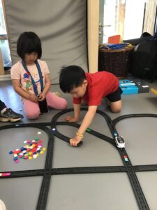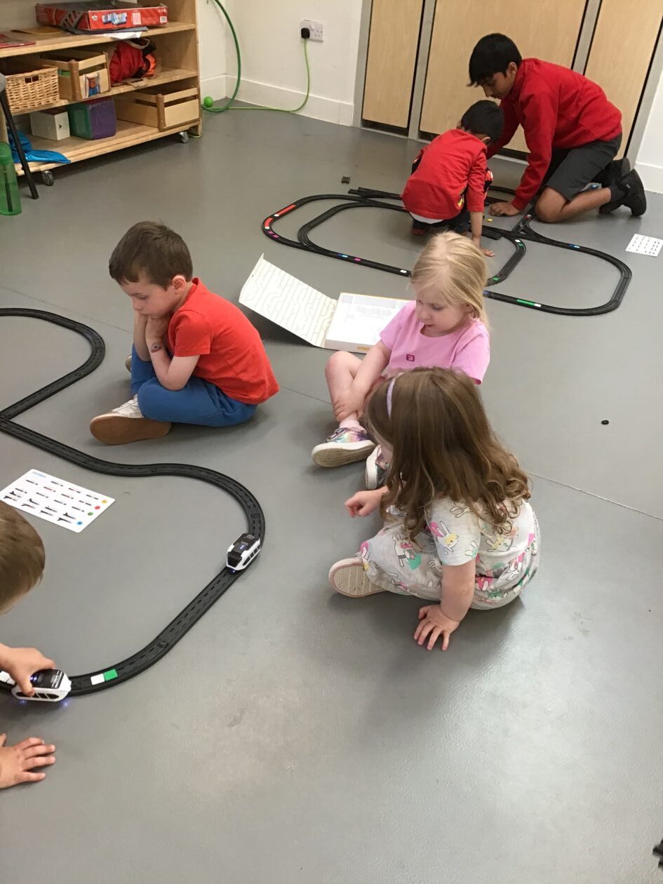 In the discovery area this week the children have been exploring with our intelino trains. These are our programmable robotic trains. The children can start by learning to code the trains with action snaps on the tracks as well as using digital technology to control their speed, direction, stops and custom commands. These trains build a strong foundation in STEM, introducing the children to basic programming concepts and helping them progressively learn to code.