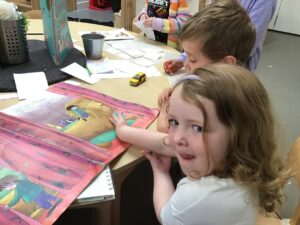 “I am making a baby, it turns purple cause Bill and Janet are blue and red and make a purple baby”  AM