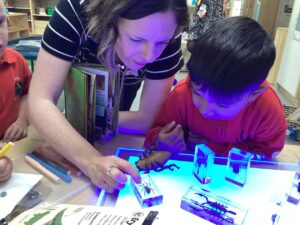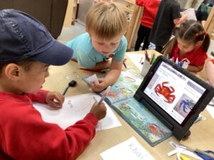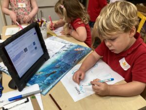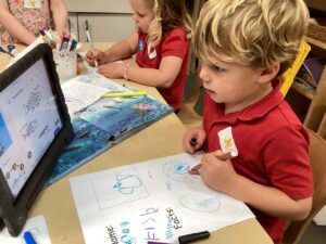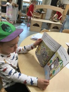 This week in the literacy area the children have been continuing to explore stories. We have had a special “spark” around the wonderful story ‘The Smeds and the Smoos’. The children have been talking about their likes and dislikes of different stories as well as creating their own special stories. The children have also been continuing to create fact files, learning about different animals and then writing down some of the wonderful facts they have found researching on our ipads and within non fiction books!