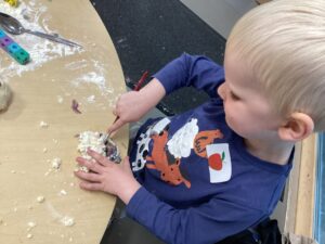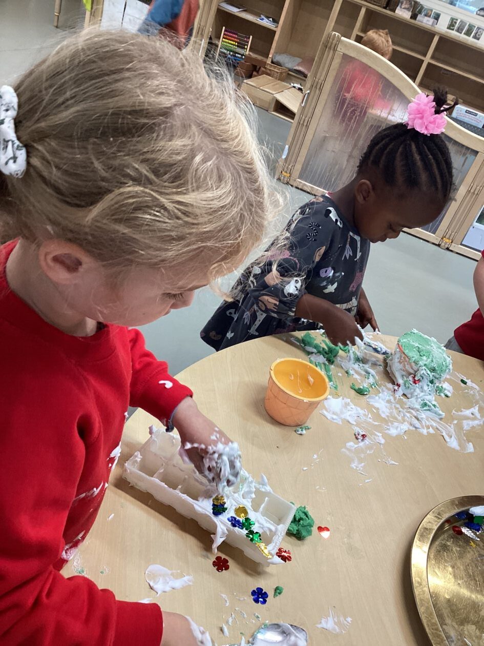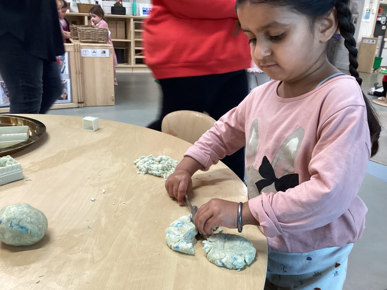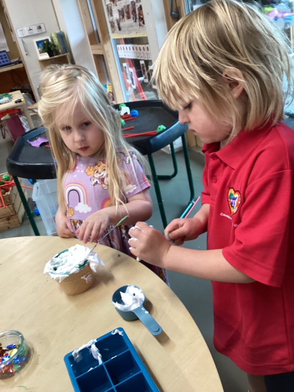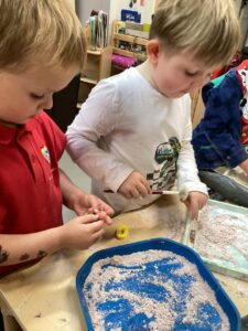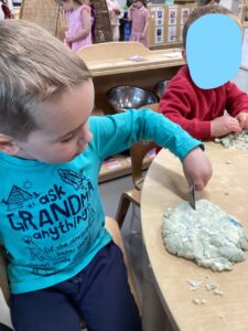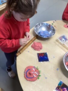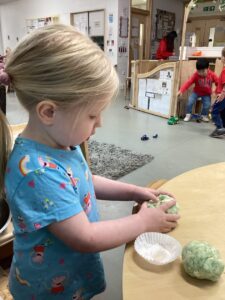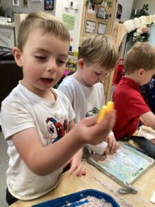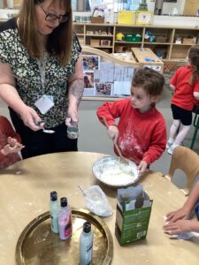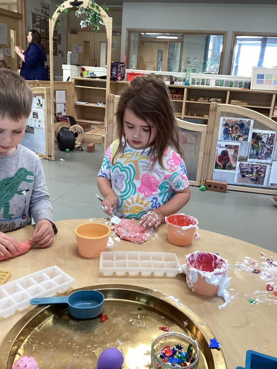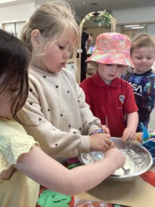 This week in the malleable area we have been looking at Easter and Springtime.We have been exploring numerous textures such as clay, play dough and shaving foam.