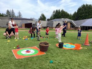 However, Evil Pea has been up to mischief and Supertato needed our help! The children used their gross motor skills to help the vegetables escape after they were tied up by Evil Pea! The children were able to use their gross motor skills and hand eye coordination to free them when he froze them in water!  Great job!
