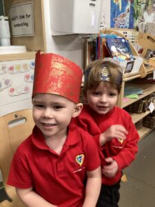 The children have also been exploring measurement. They have been using non-standard units of measure to measure their heads to then make crowns!