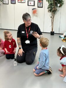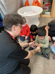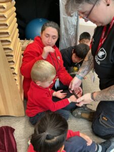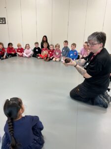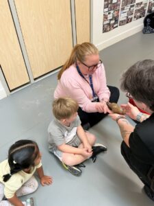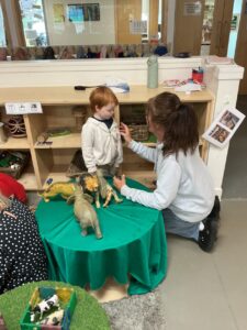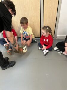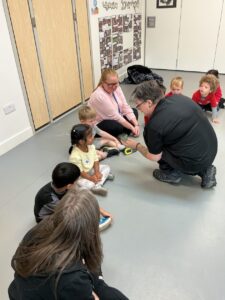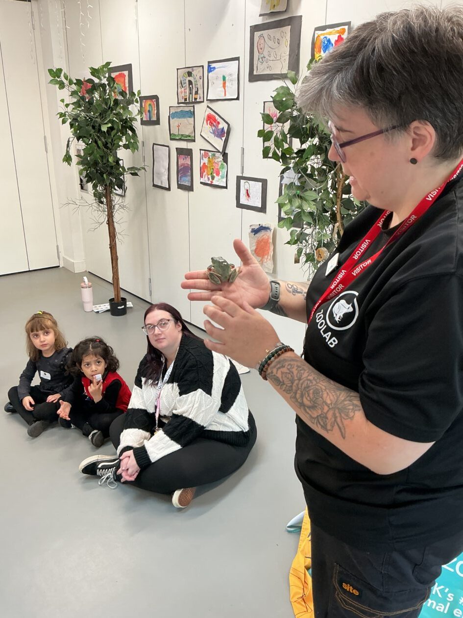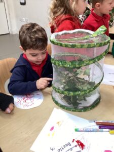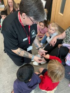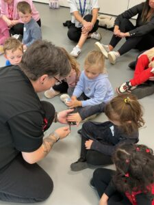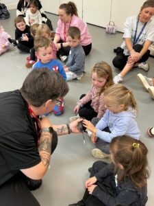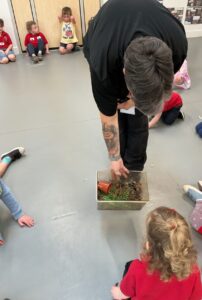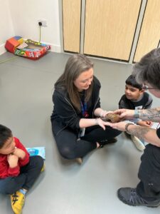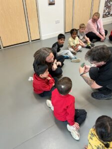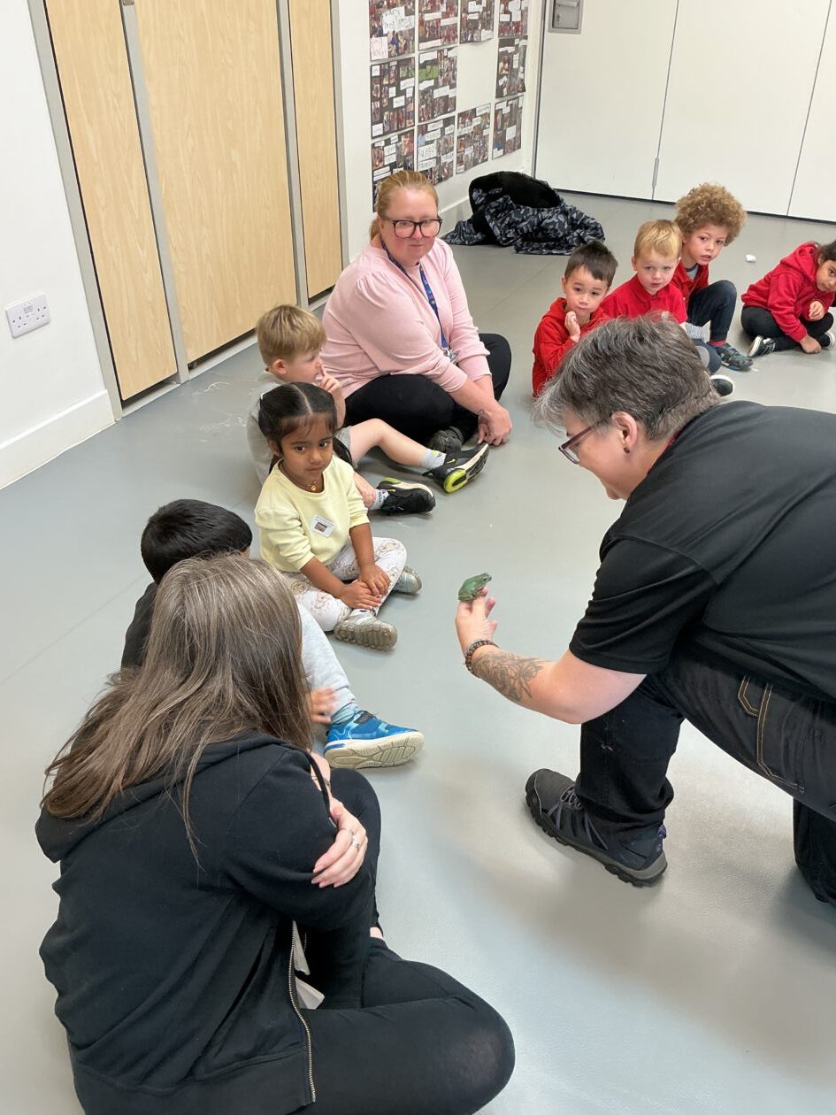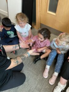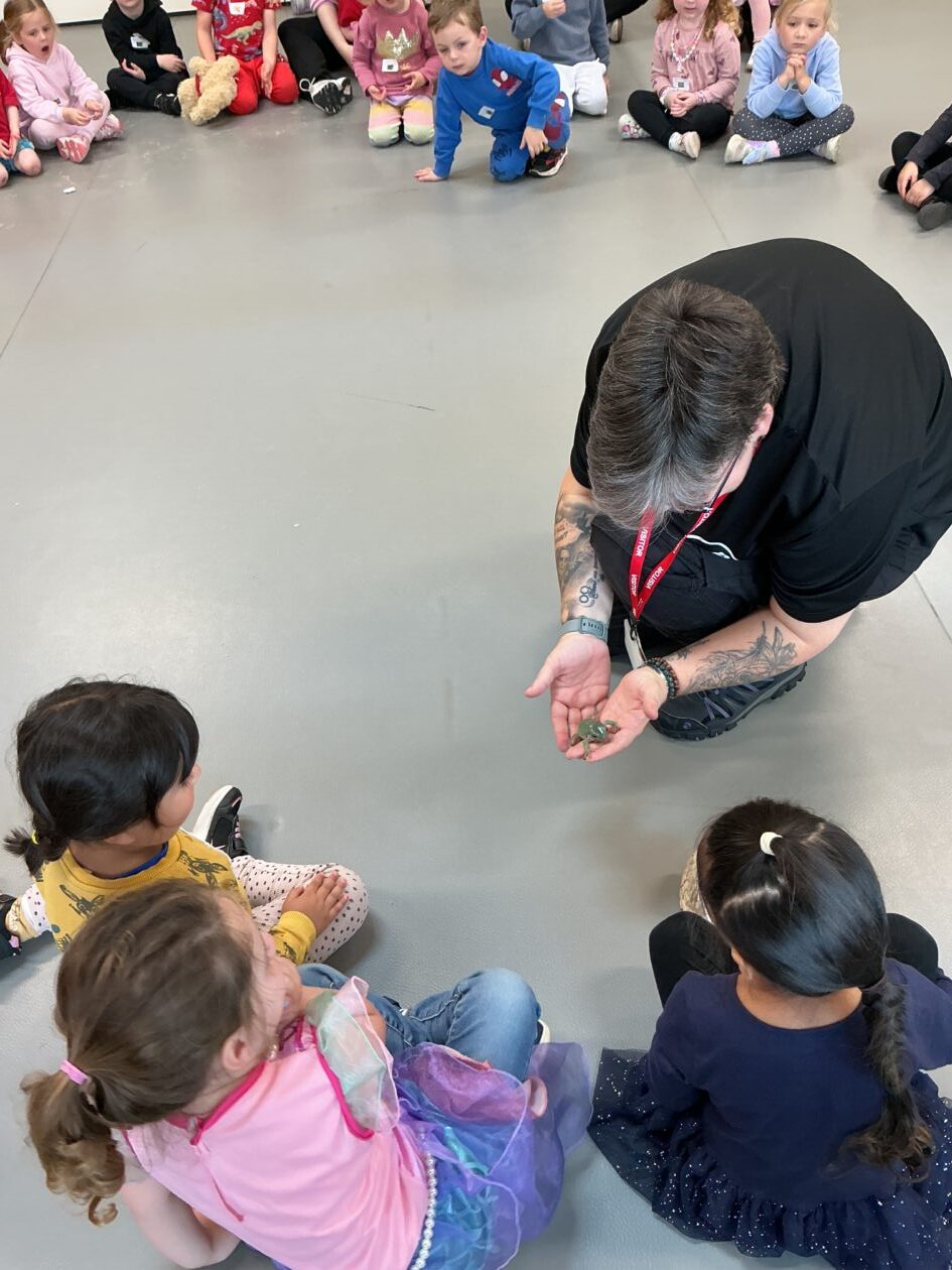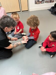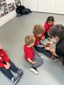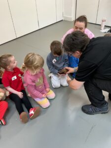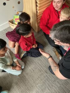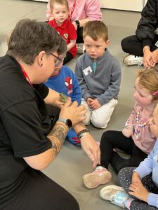 We met Dobbie the tree frog! He had big sticky toes for climbing. We found out that Dobbie wasn’t very good at swimming as he didn’t have webbed feet. Dobbie breathes through his skin, whereas “we breathe through our mouths” – AC