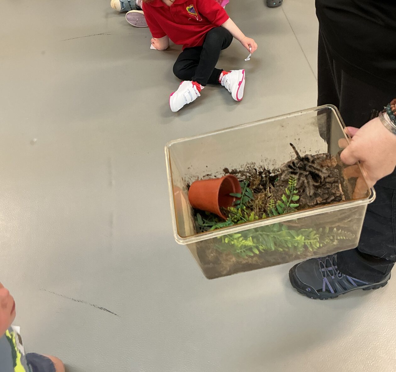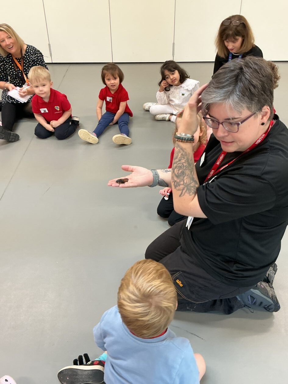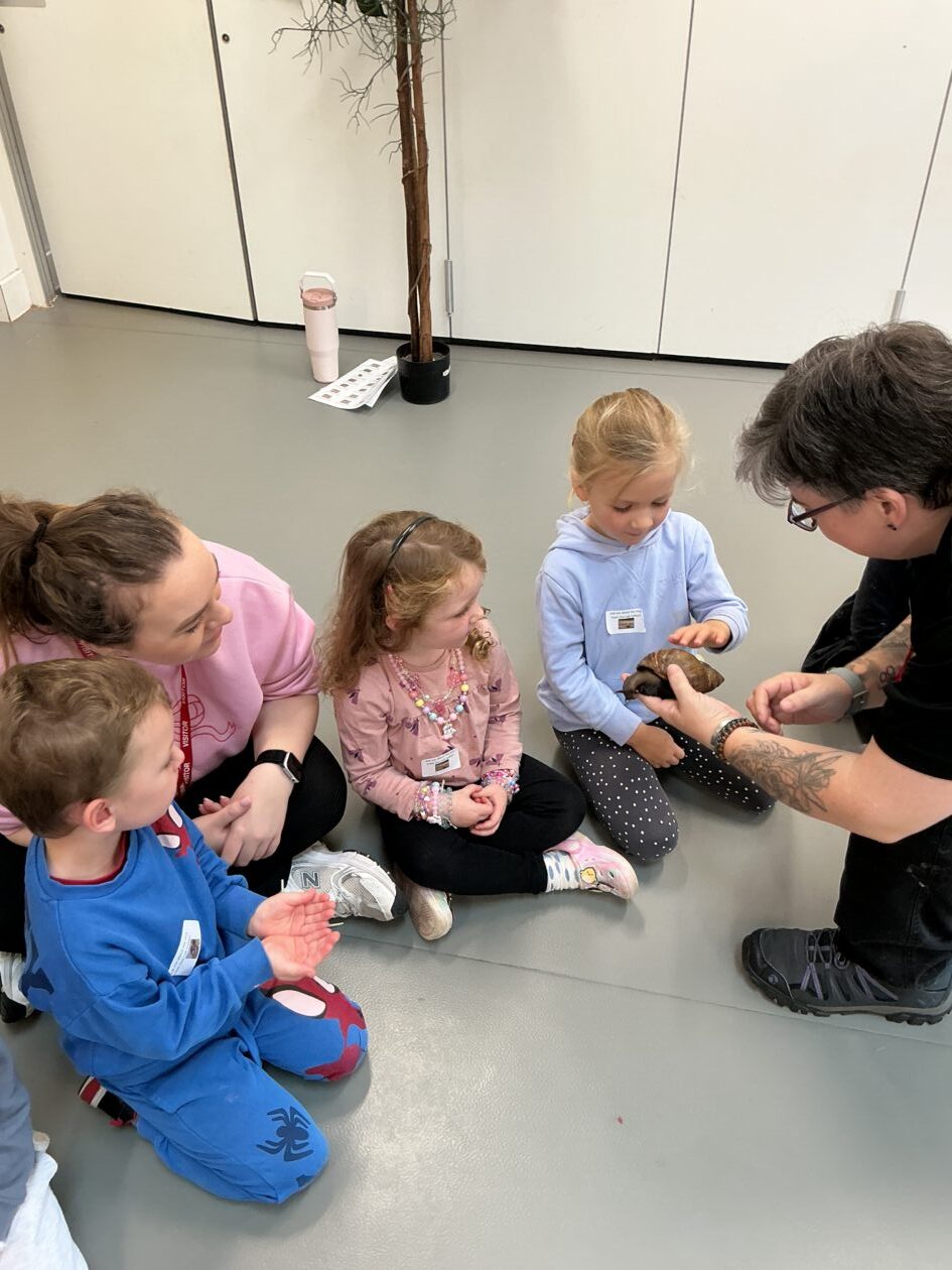 We also met Luna a 6 year old tarantula. She came all the way from the Island of Honduras. She can live for around 25 years! Whereas male tarantulas might only live until they are 5. We learned that the hair on her legs are actually her ears! She had eaten her dinner last night so was feeling pretty lazy! She had eaten one cricket.