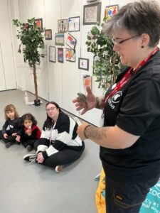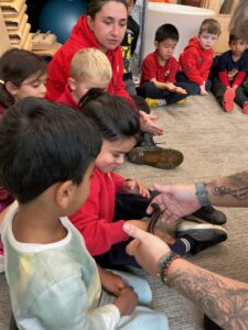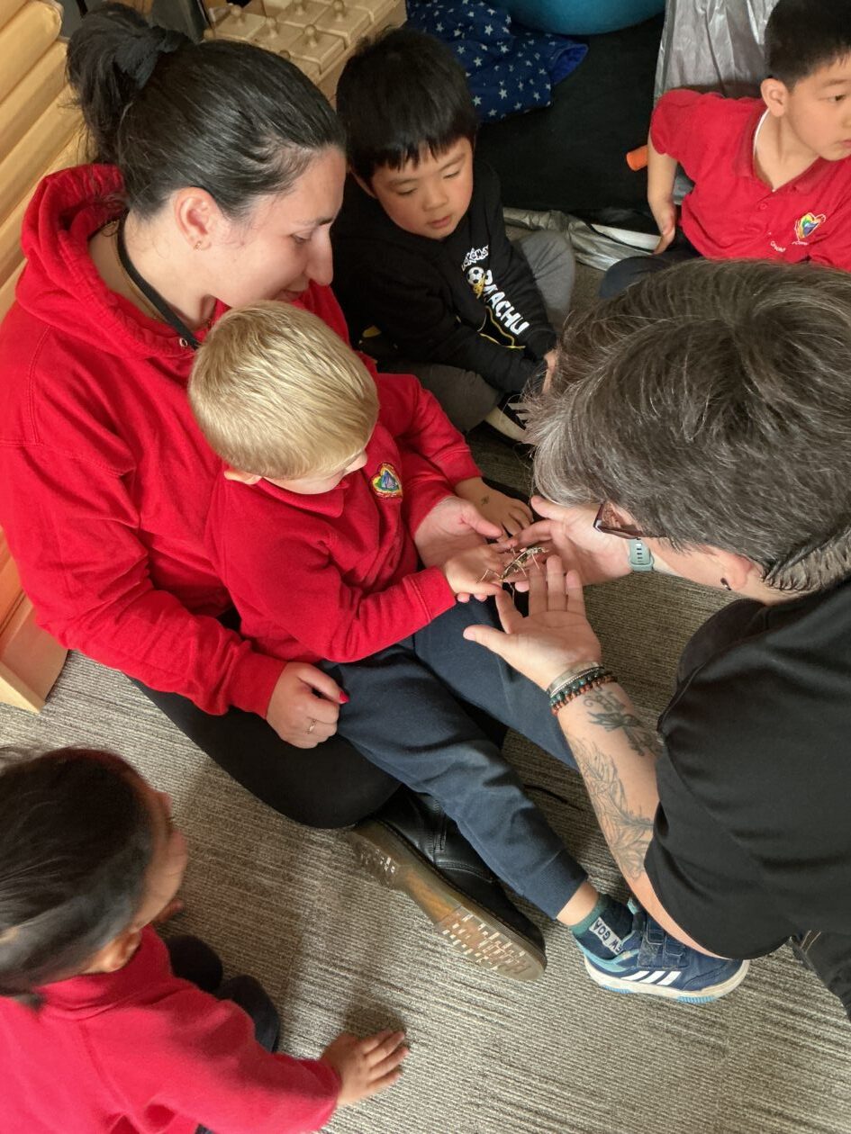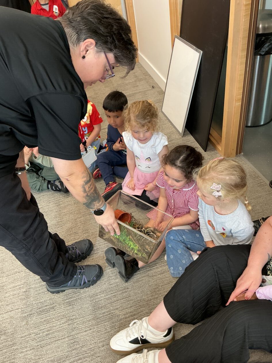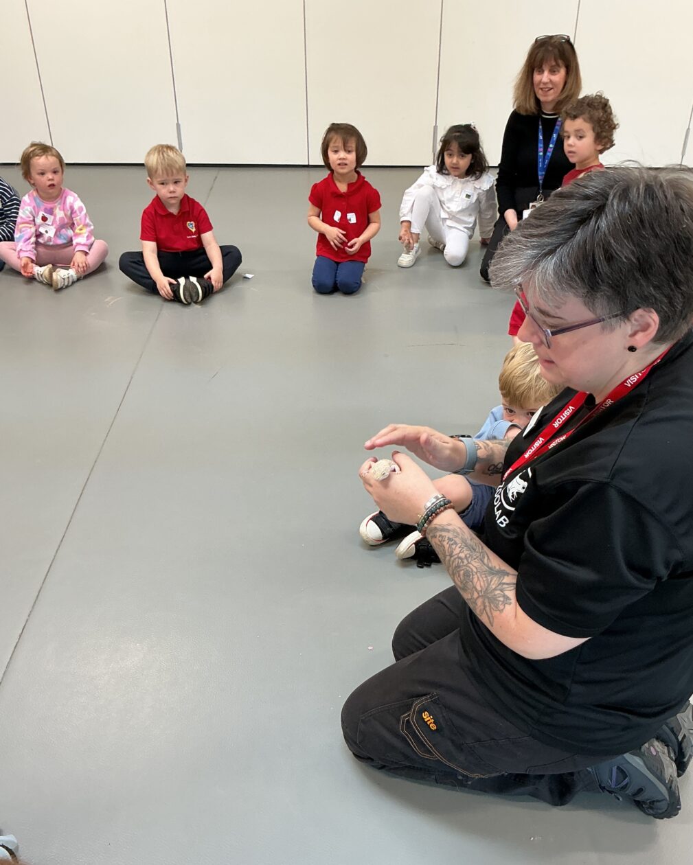 We also met Luna a 6 year old tarantula. She came all the way from the Island of Honduras. She can live for around 25 years! Whereas male tarantulas might only live until they are 5. We learned that the hair on her legs are actually her ears! She had eaten her dinner last night so was feeling pretty lazy! She had eaten one cricket.