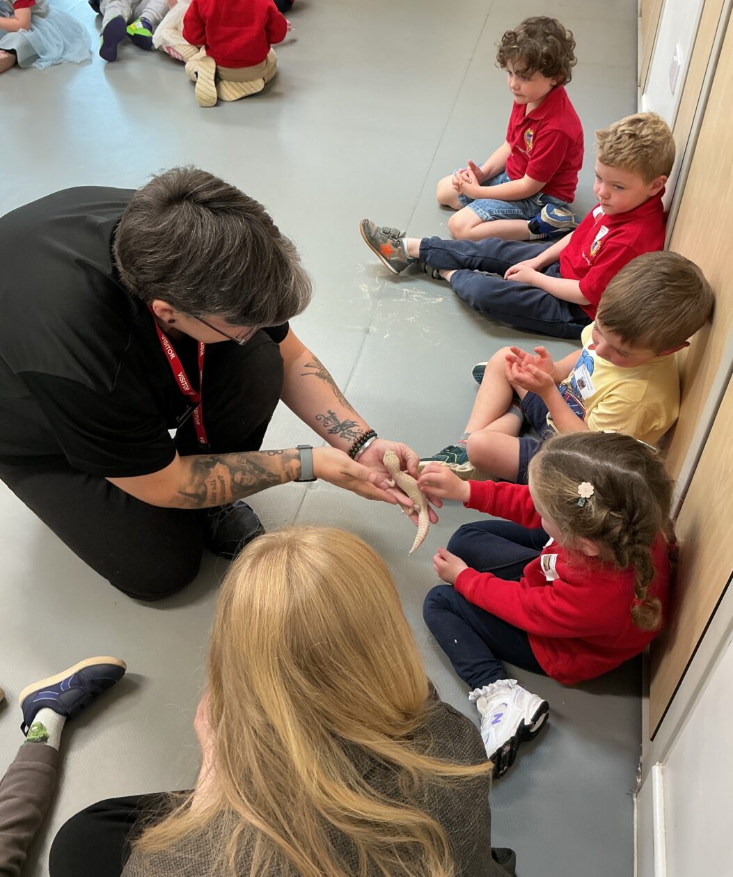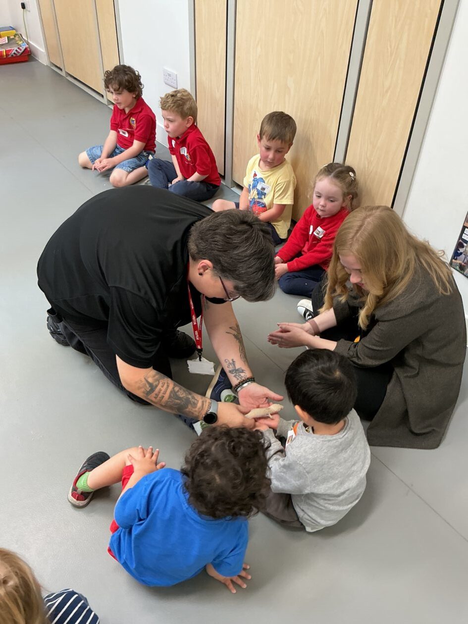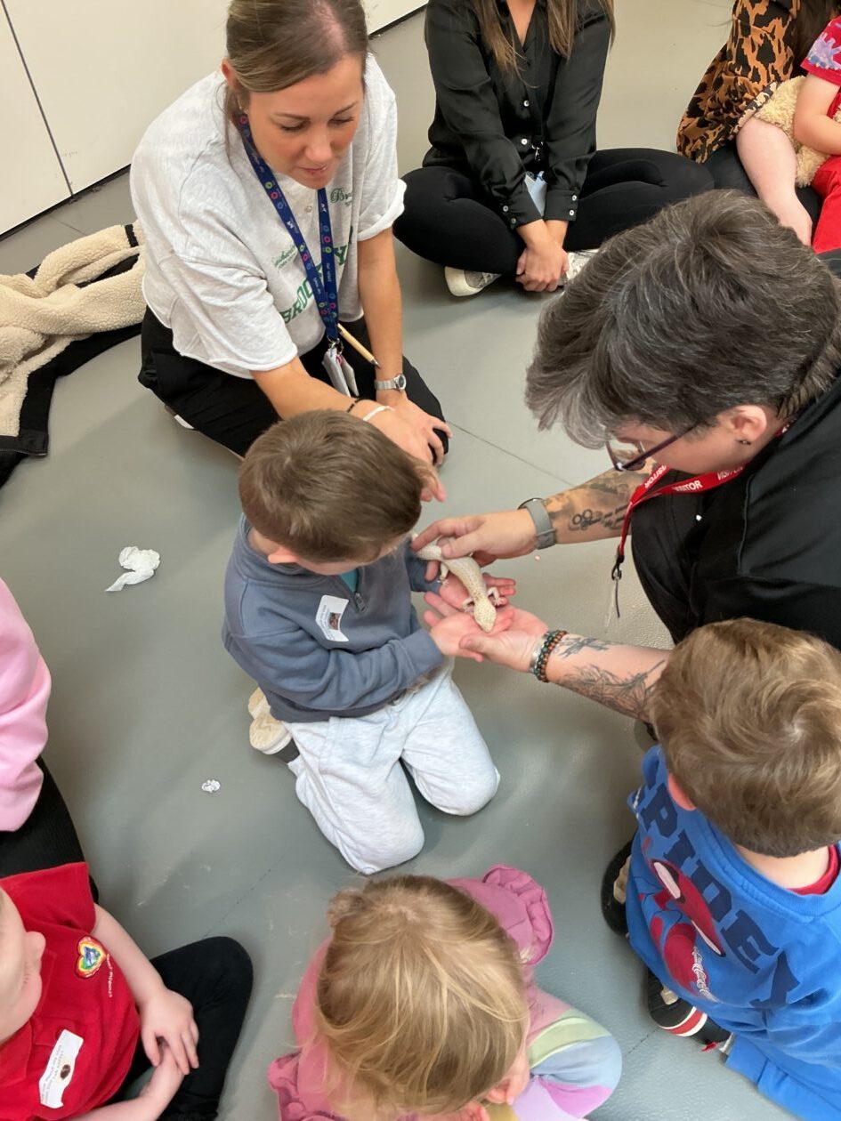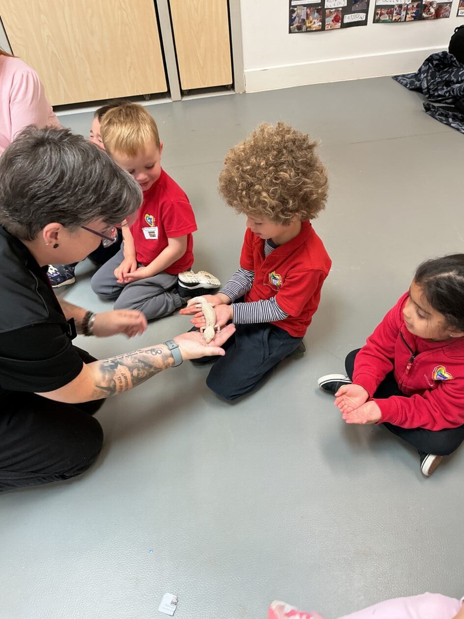 This week we were extremely lucky to have had a visit from Ash from Zoo Lab. Ash bought along some of her fascinating pets with her which the children got to touch and hold.