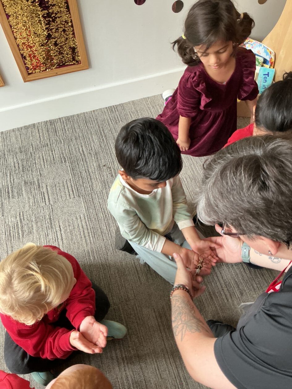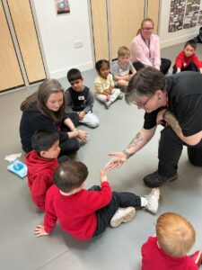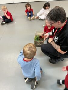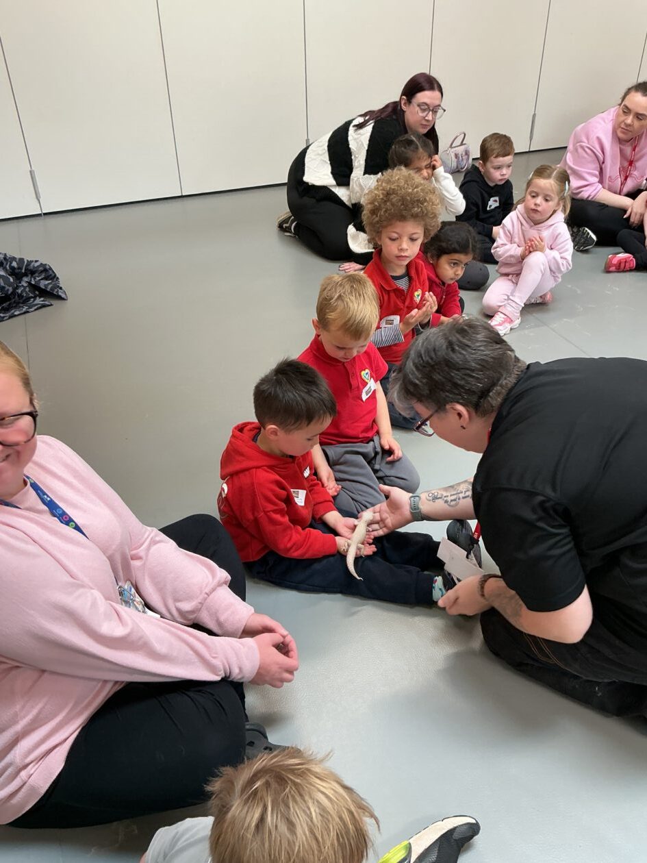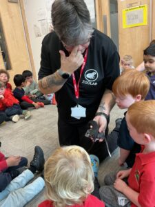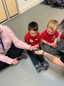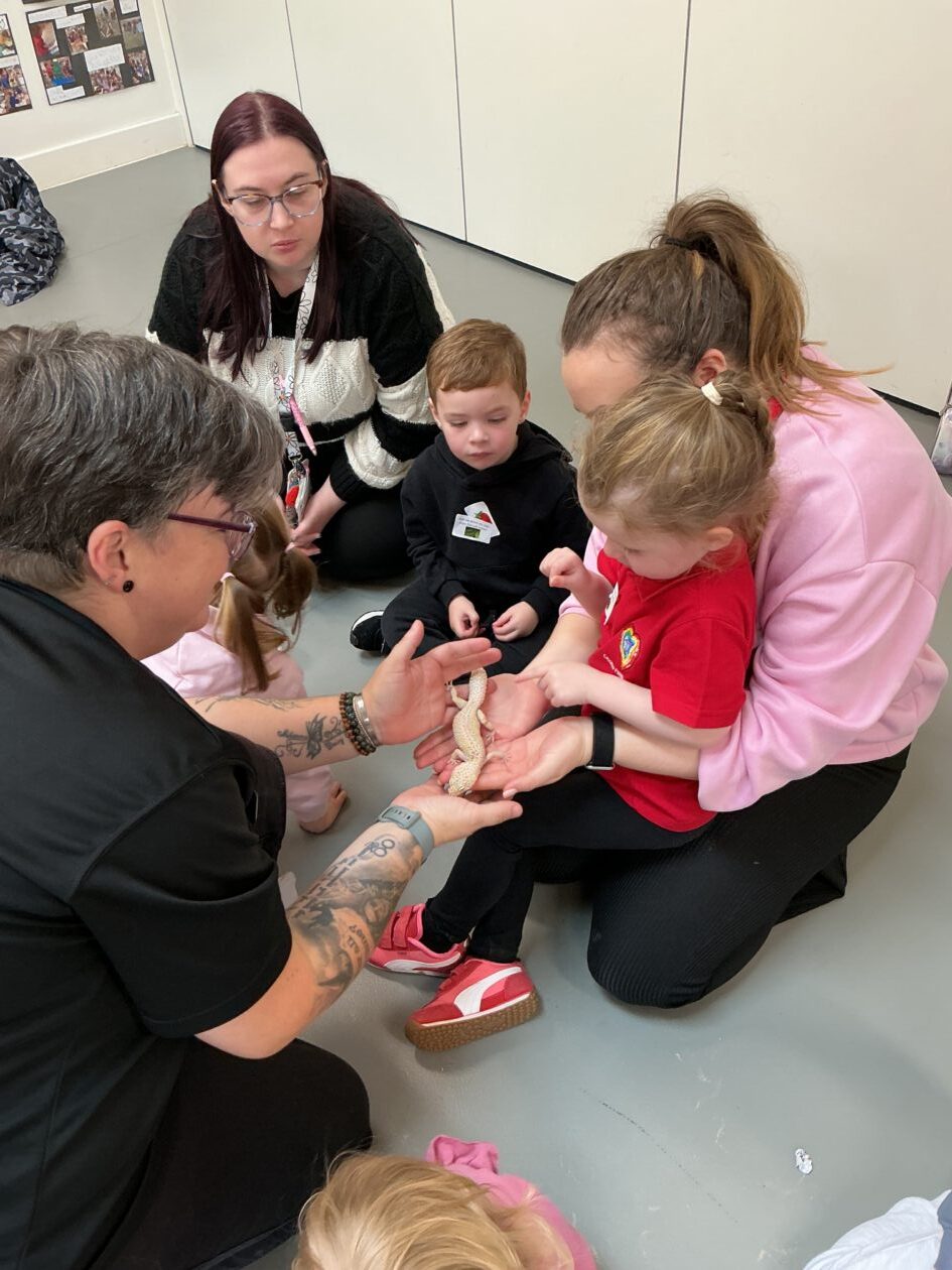 This week we were extremely lucky to have had a visit from Ash from Zoo Lab. Ash bought along some of her fascinating pets with her which the children got to touch and hold.
