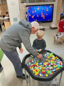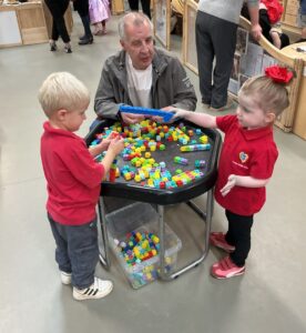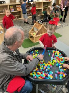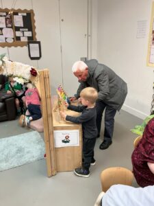 Thank you to those who attended our Grandparent’s Pop in and Play. It was lovely to have our special visitors in to play! Intergenerational work in early years involves creating opportunities for young children and older adults to interact, build relationships, and engage in shared experiences, benefitting both generations by fostering empathy and communication skills in children and leading to improved well-being for all involved. Here are some wonderful pictures.