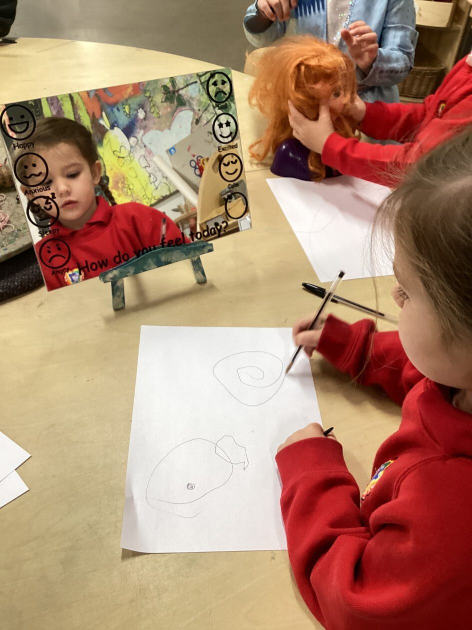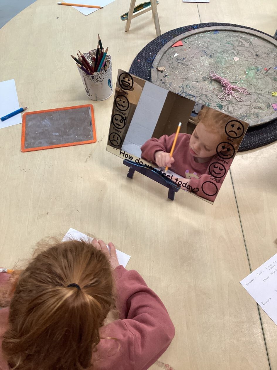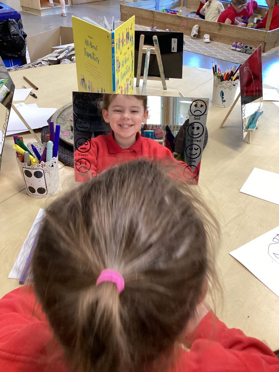 This week in the creative area we have been using the emotion mirrors to talk about and draw how we feel. The children have spoken about what makes them feel happy, sad, excited, angry, nervous, worried and sleepy. We have been looking at the details on our faces and how they change when our emotions change.