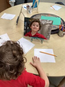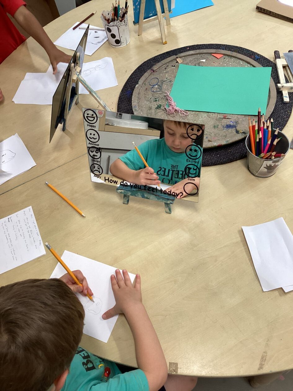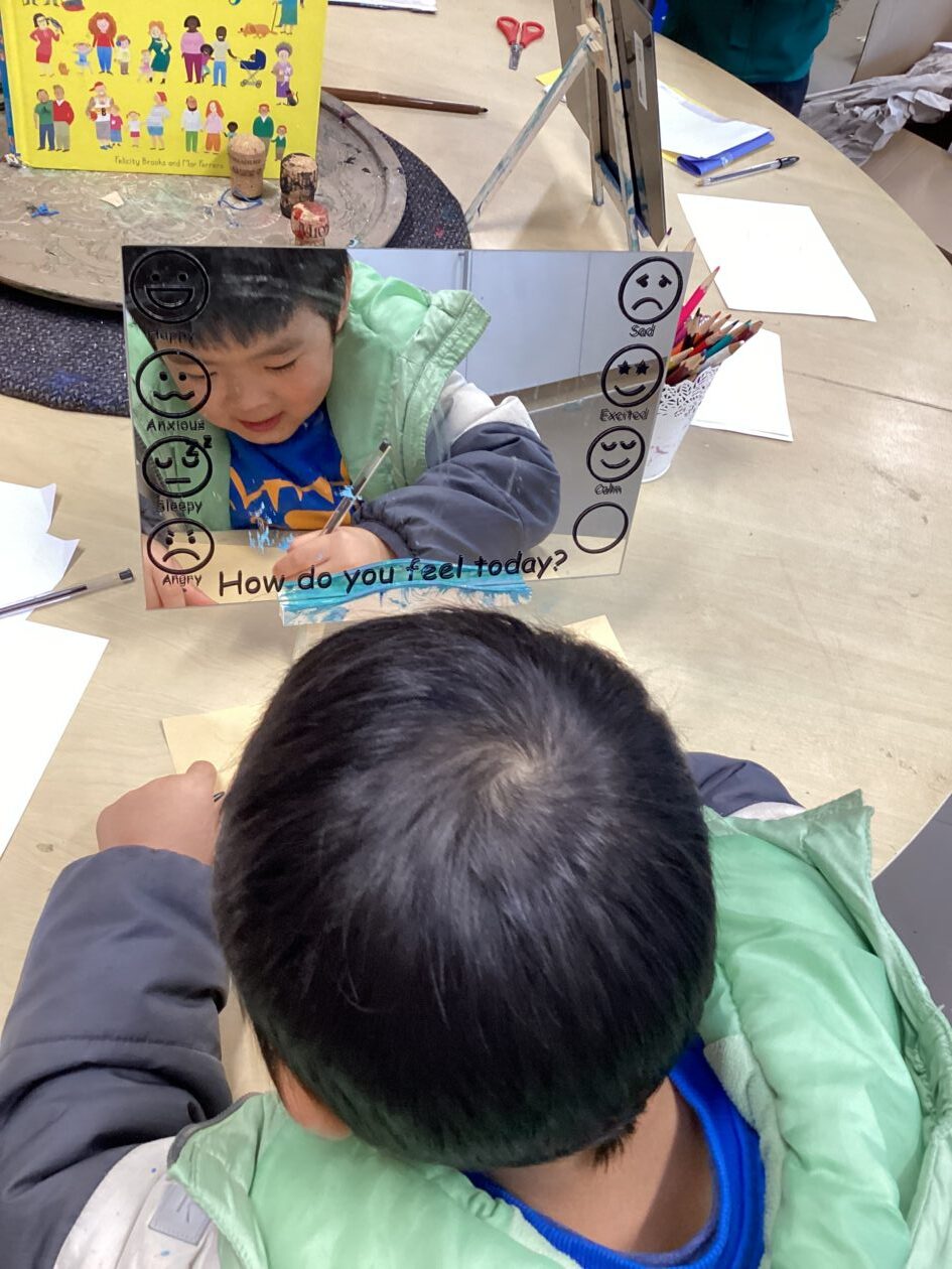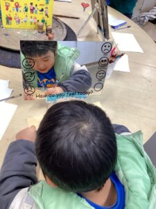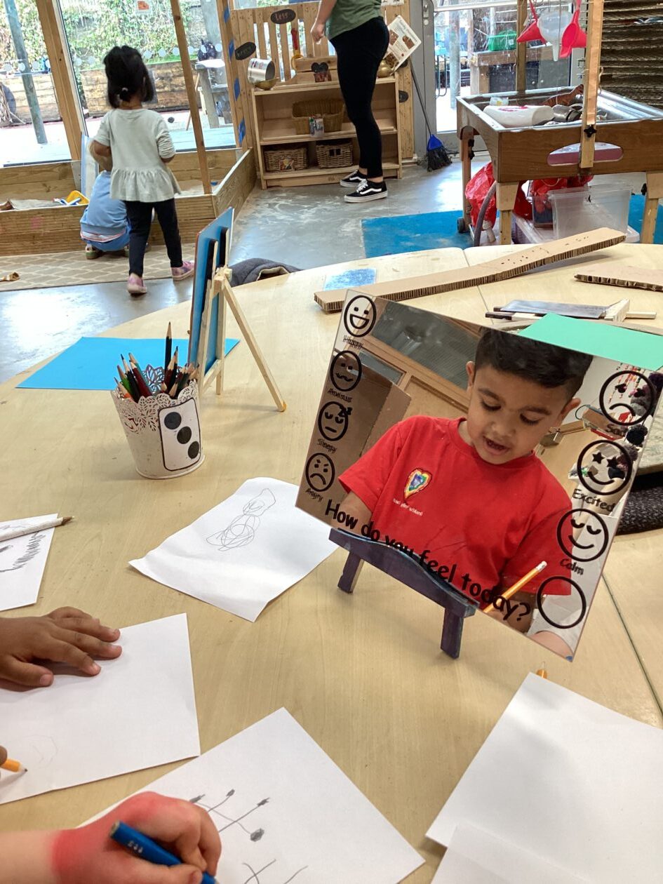 This week in the creative area we have been using the emotion mirrors to talk about and draw how we feel. The children have spoken about what makes them feel happy, sad, excited, angry, nervous, worried and sleepy. We have been looking at the details on our faces and how they change when our emotions change.