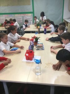 We are working on art with Mrs Hutchison. This week we mixed colours with Mrs Hutchison in art making primary, secondary and tertiary colours. It was quite messy, but great fun.