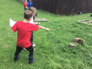We went to the woodland with Mrs Biggart and had great fun building an activity trail. We used team work, creativity and problem solving skills.