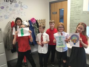 We’ve been writing this week too. We worked to complete some story starters. After completing our writing we worked in pairs to peer-assess it using different colours to pick out some great examples.