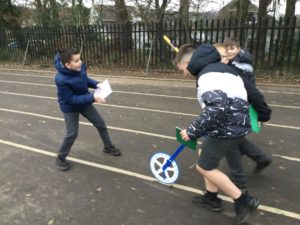 “For P.E in the MUGA we did some hockey. We set up 5 stations and worked on our hockey skills and fitness at each one.” Harris