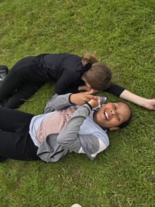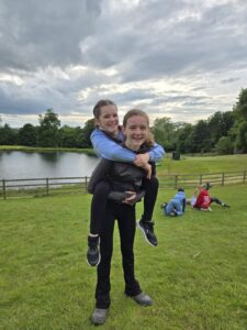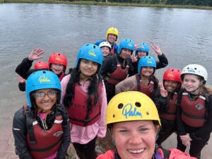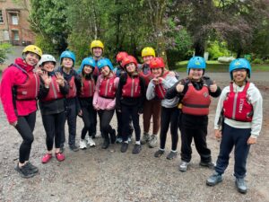 We have arrived safely at Lockerbie! The weather has been on our side and the sun in currently shining. Everyone is taking part in their first activity – some have lots of mud on them already!!