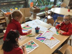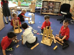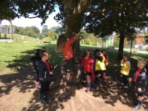 This week we have been really busy developing our maths skills outdoors. We watched a live lesson on symmetry and then made a SymmeTREE. We also collected items from the woodland area and after lots of discussion, sorted them using a range of criteria.