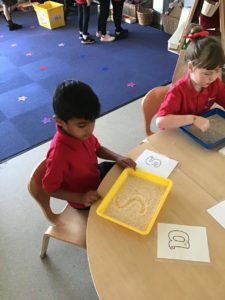 We have learned another 3 new sounds – c/k, e and h and we have been consolidating our previous sounds with lots of activities.