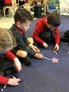 This week in Numeracy we have been investigating more and less in number. We had a whole class game of Play Your Cards Right!