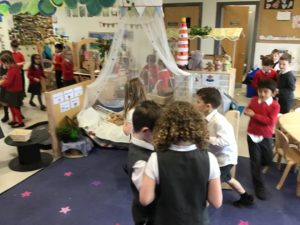 Here are some more pictures of this week’s learning including baking, sewing, metal loose parts, some phantom broken limbs, a huge cardboard box and a bubble wrap river.