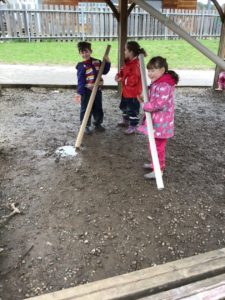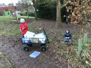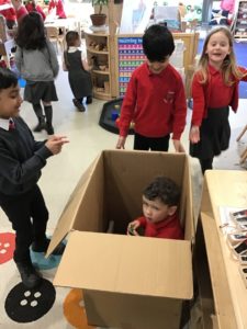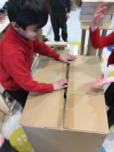 Here are some more pictures of this week’s learning including baking, sewing, metal loose parts, some phantom broken limbs, a huge cardboard box and a bubble wrap river.