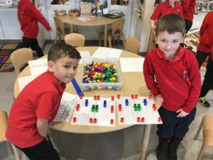 This week in Numeracy we have been investigating more and less in number. We had a whole class game of Play Your Cards Right!