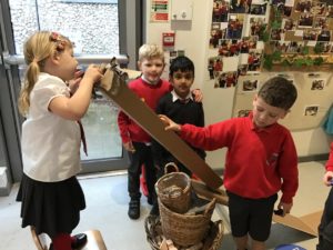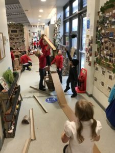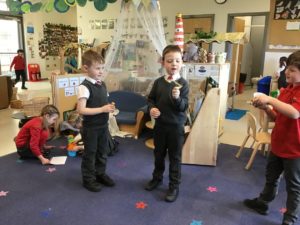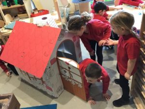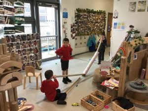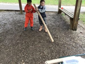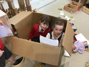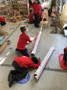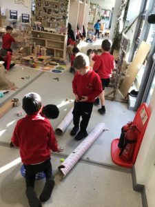 We have been gifted a load of cardboard tubes. So far this week, they have been (amongst other things) listening devices, hockey sticks, measuring devices and car ramps.