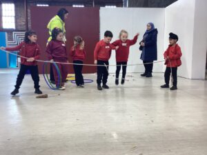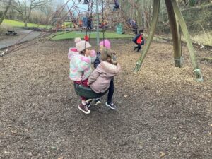 This week we took advantage of the good weather and took our play outside to the activity trail where the children showed off how good their balancing had become. We had lots of fun and helped each other to make it to the end of the trail.