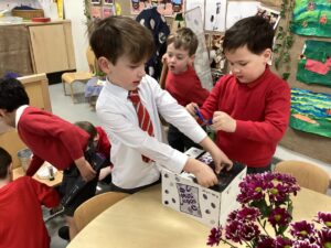 This week the class have continued to develop their creativity and problem solving skills as they have used junk materials to build with. The children have worked independently on their own designs and as part of a small group to create magic potion pots, a BFF rocket and a shield to name a few. If you have any junk materials at home, please send them in as there are hours of fun to be had with them.