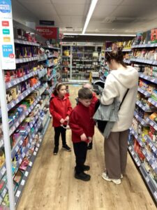 We had a wonderful sunny day to walk to the Co-op to deepen our understanding of money and the services of a local business. The children worked well together in their groups to explore and complete some challenges encouraging them to look at the prices of items. They were able to spot and talk about their favourite foods and plan a dinner they would like to enjoy. We finished our experience by buying some ingredients to make play dough in the classroom. We enjoyed a little treat in the sun to give us some energy to manage the big walk back. Thank you to our lovely helpers who made the experience much easier to manage. Here is a wee snapshot of our trip.
