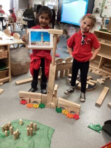 We learnt about different places of worship and what happens in a Mosque. We then tried to build some Mosques using photographs in the block area. We realised all of the buildings were very grand and had lots of interesting details on them.
