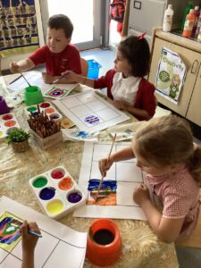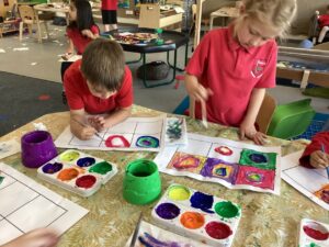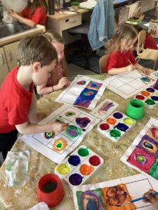 This week the children have been learning about the work of Kandinsky, a painter famous for his abstract art. We spoke about his use of colour, warm and cool and the shapes used within the art. We then had a go at creating our own pieces of art.