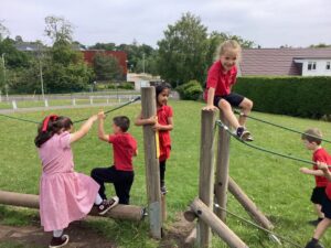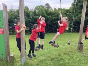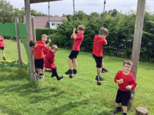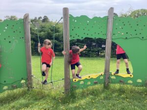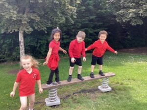 This week we took advantage of the good weather and took our play outside to the activity trail where the children showed off how good their balancing had become. We had lots of fun and helped each other to make it to the end of the trail.