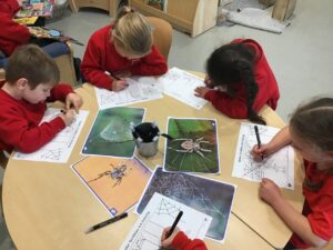 We had a go at drawing spooky spiders and spider webs which encouraged us to think about our pencil control.