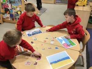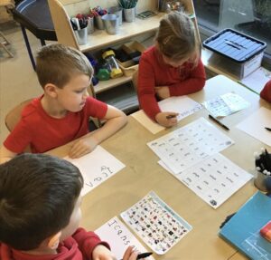 Completing a cut and stick activity. We had to use our sound knowledge to help match the word to the correct picture.