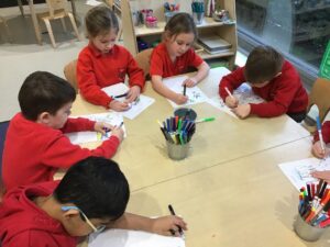 We also coloured in a Nativity scene and then wrote an invitation to our grown ups, inviting them to our Nativity. We discussed what we need to include in an invitation and formed our invite together.