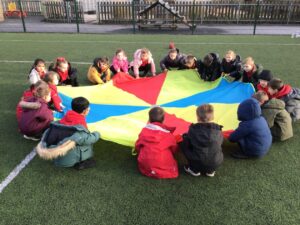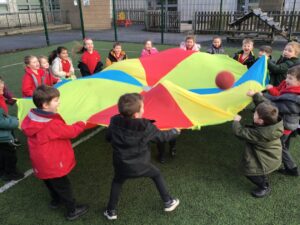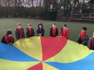 During PE on Thursday we brought the parachute out to finish our lesson with some fun games. The parachute always causes lots of excitement but makes us think about working together as a team and the games also require lots of listening!
