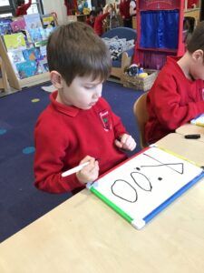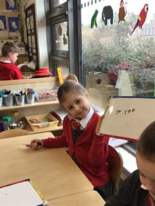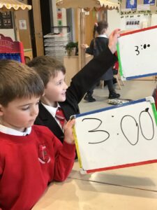 We also completed our learning for now about time by exploring time on a digital clock. We matched analogue and digital times together and then had a go at writing our own digital time on whiteboards by looking at an analogue clock.