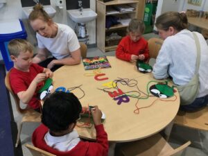We have been developing our sound recognition by putting the picture on the correct sound that it begins with.