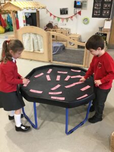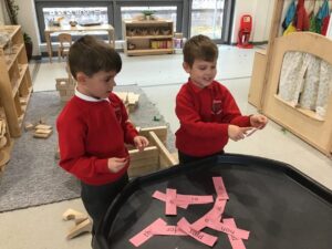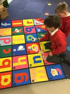 We have been developing our sound recognition by putting the picture on the correct sound that it begins with.