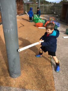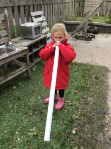 We then took our learning outdoors to the garden. We explored various sounds we could make with the materials in the garden.