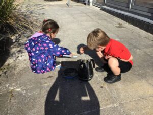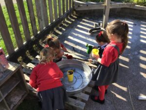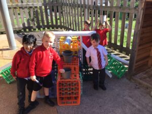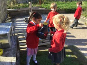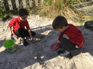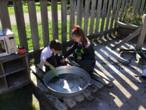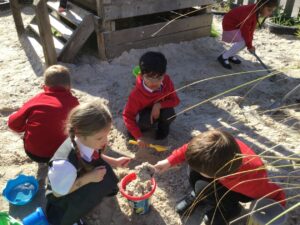 We have been learning about ‘more than and less than’ in class and demonstrated this at the tuff spot. We could count out the potatoes to help us.