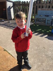 As it was Maths Week Scotland we took our learning outdoors. We discussed the vocabulary used in measure such as longer and shorter. We then made our own tower with the cubes and use this to help us measure anything we could find in the garden. There was lots of discussion and comparing of sizes.