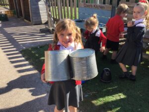 We are developing our Phonological Awareness skills and this week went on a Listening Walk around the school grounds. We heard different types of birds, cars, lorries and children playing. Some of us were sure we also heard a dog barking in the distance. We then drew and discussed what we had heard when we returned to the classroom.