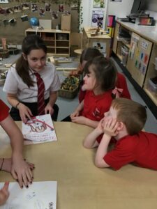 On Monday we spent our PE time with our P6 buddies. The P6s organised some games for us and the game of ‘rock, paper, scissors, shoot’ proved very popular. We loved spending time with our buddies!