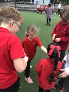 On Monday we spent our PE time with our P6 buddies. The P6s organised some games for us and the game of ‘rock, paper, scissors, shoot’ proved very popular. We loved spending time with our buddies!