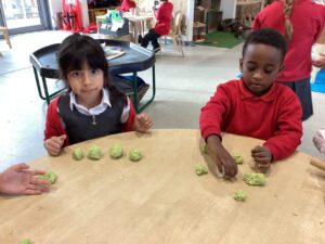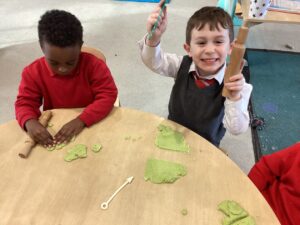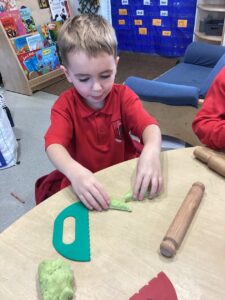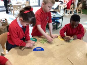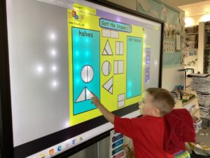 This week we have been looking at halves carefully exploring shapes that have been split into two equal parts. We were able to identify shapes that did and did not show halves, sort them accordingly and use our knowledge of equal parts in our play with the play dough.