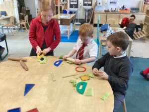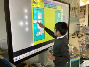 This week we have been developing our understanding of 2D and 3D shapes. We have discussed the properties of a cone, cube, cuboid, cylinder and sphere and enjoyed using these in some of our building designs. We have recapped the names of common 2D shapes including a circle, square, rectangle and triangle and have played a variety of games to sort and match them. We found the shape monsters made a funny noise when they ate the right shape.