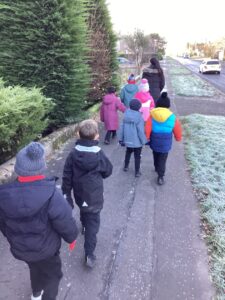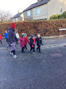 We were very lucky to be invited up to Mearns library to receive a bag of books to enjoy at home. The class did very well walking safely up to the library and enjoyed listening to some stories together. Here are a couple of pics from the trip.