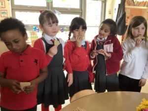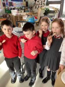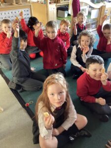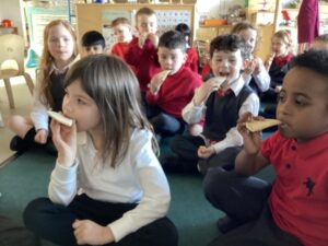 This week we enjoyed tasting some Scottish traditional foods including shortbread, vegetarian haggis, oatcakes, porridge and potato scones. It was a great opportunity to share our own experiences of foods we enjoy at home and to try some new foods.