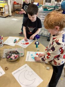 This week we enjoyed making characters from clay based on our story of the week ‘The Gruffalo’. The children showed creativity and perseverance to get their character into the shape they wanted. They used the tools well to add intricate details and learnt about patience waiting for them to fully dry to take them home.